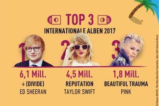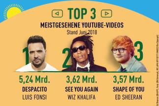 Die Spitzenreiter in der Gesamtwertung des Jahres 2017 hießen Ed Sheeran und Taylor Swift. Bei großen Internet-Musikdiensten wie Spotify aber wurde kein anderes Lied öfter angeklickt als "Despacito". Das zugehörige Video hält auf YouTube mit 5,24 Milliarden Aufrufen mittlerweile den Rekord als Clip mit den meisten Aufrufen in der Geschichte von YouTube.