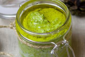 Eine schnellere Methode, weil in der heutigen Zeit ja alles schneller gehen soll, ist die Mischung mit Honig und Zitrone. Eine Handvoll der jungen, noch hellgrünen Triebe - etwa 50 Gramm - werden dafür mit der gleichen Menge Zitrone (das ist ungefähr eine halbe), und mit 150 Gramm Honig gemixt. Eventuell darf noch eine Prise Galgant hinein, um dem Aufstrich eine ganz leichte Schärfe zu geben.
