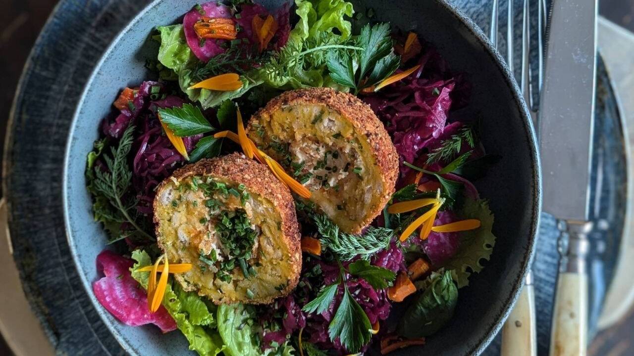 Die Knödelmasse in 8 Portionen teilen, die Knödel mit Käse nach Geschmack füllen. Danach die Knödel in Mehl, verquirltem Ei und dem Mix aus Brösel und Kürbiskernen panieren und bei mittlerer Hitze goldgelb frittieren.