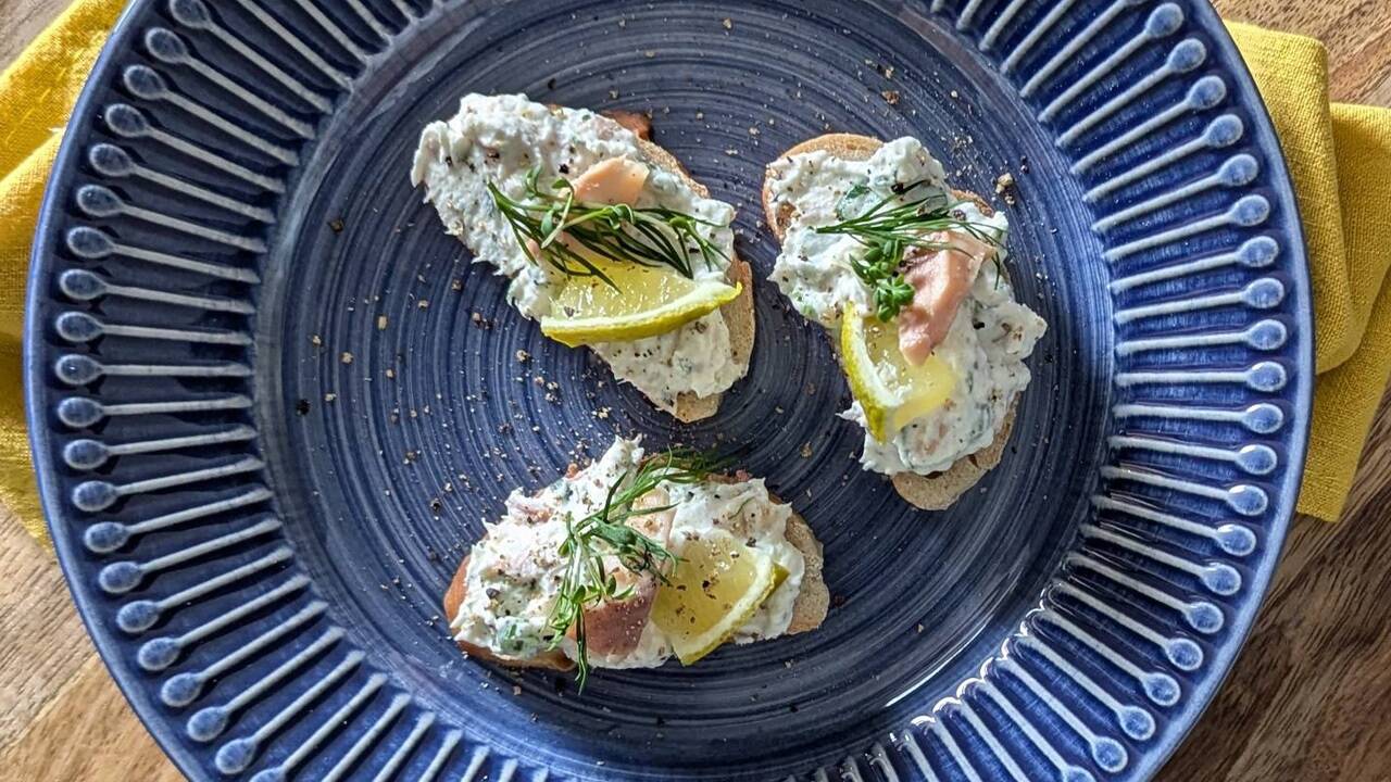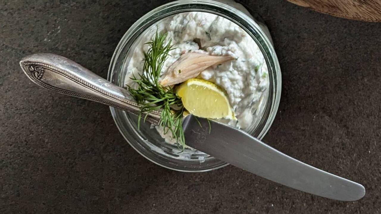 Der Aufstrich passt sehr gut auf Roggenbrot oder Baguette. Zum Servieren mit etwas frischem Dill, etwas Zitrone und Räucherfischfilet belegen.