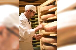 Die Idee, Frankreich auf den Spuren seiner Käse zu durchqueren, gefällt Claude Querry so gut, dass er im Fort St. Antoine beim Lac de Saint-Point einen Comté-Laib aus dem Regal kippt und mit dem Bohr- und Klopfhämmerchen der Käsetester eine Skizze unserer Route in die Rinde ritzt. Die traditionellen Sorten verraten viel über die Geschichte und die Landschaften, aus denen sie kommen, bestätigt der Chef des Reifungskellers. Große Laibe entstanden als Vorrat in höheren Lagen, wo im Winter nicht genügend Milch vorhanden war. Um einen solchen Hartkäse machen zu können, bekam im Jura früher jeder Bauer reihum auch die Milch seiner Nachbarn. So entstanden im 13. Jahrhundert erste Genossenschaften für landwirtschaftliche "Früchte". In der modernen Fruitière des Lacs ganz in der Nähe ist das vor allem der Comté. "Aus jedem Kessel schmeckt der Käse anders", erklärt der Landwirt Jonathan Martin. Jahreszeit, Weideboden, Milchmischung und Reifungskeller lassen jeden Comté zu einer Überraschung werden, die mit einem von dreiundachtzig Aromen, von "fruchtig" bis "geröstet", umschrieben werden kann.