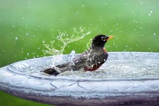 Die kleinste, aber romantischste Wasserstelle. Ob Steinbecken, verrostete flache Eisenschale oder auch nur ein kleines Stück aufgelegter Folie, die mit Steinen abgedeckt ist: für die Vögel (und auch so manche Bienen) ein herrlicher Platz zum Trinken und Baden - und zum Beobachten!