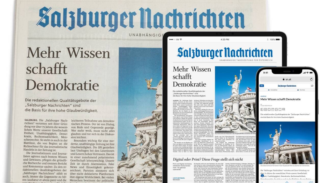 Im Bundesland Salzburg sind die "Salzburger Nachrichten" weiterhin die Tageszeitung mit der höchsten Print-Reichweite: Die SN liegen hier bei 29,4 Prozent an Wochentagen sowie bei 33,2 Prozent am Wochenende. Bei der nationalen Reichweite kommen die SN wochentags auf 4,1 Prozent Markenreichweite (= 314.000 Leser) bzw. 3,1 Prozent print only. Am Samstag erreicht die Printausgabe 3,5 Prozent (= 272.000 Leser).