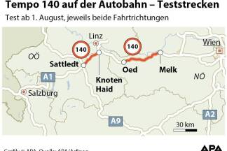 Auf Basis der Vergleichswerte will das Verkehrsministerium im August 2019 entscheiden, ob Tempo 140 beibehalten und ausgeweitet wird. Dafür infrage kommen laut Hofer weniger als 50 Prozent der heimischen Autobahnkilometer.