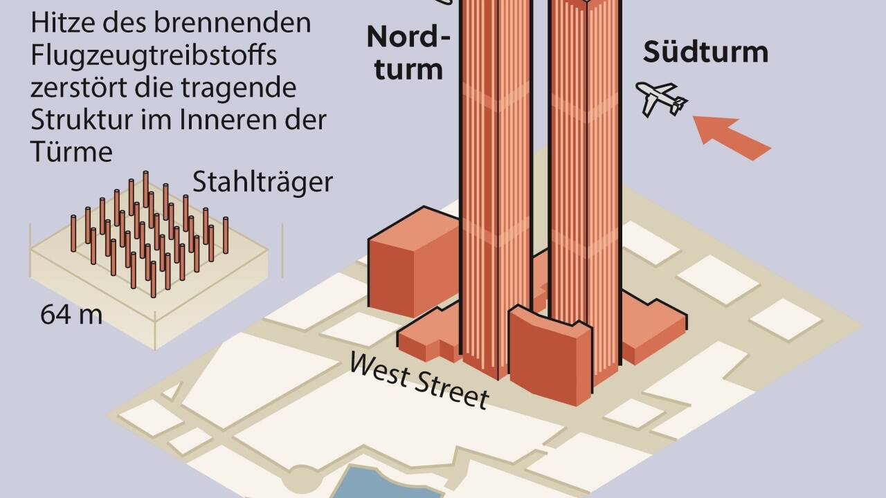 Über 32 Kilometer waren die brennenden Türme des World Trade Centers zu sehen. Die Hitze des New Yorker Infernos betrug bis zu 1260 Grad, unterirdische Feuer brannten 69 Tage lang. 98 Feuerwehrfahrzeuge wurden in New York zerstört. Es dauerte neun Monate, bis 1,8 Millionen Tonnen Schutt vom Ground Zero entfernt wurden. New York erhielt in den zwei Monaten nach 9/11 9,5 Milliarden Dollar US-Bundeshilfen.