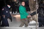 Polizisten verhaften einen Nawalny-Unterstützer in St. Petersburg.
