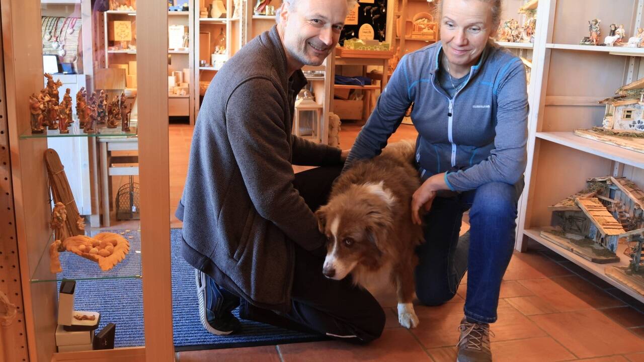 Wild wedelnd begrüßt "Marley", der Hund von Ilona und Gerhard Lüftenegger, die Gäste im Geschäft in der Wolfgangseestraße 38.