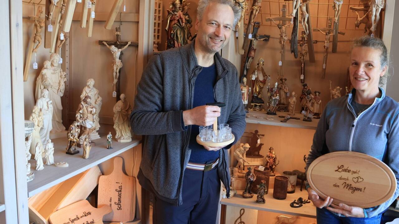 Gerhard Lüftenegger (56) ist ein gebürtiger Stodinger, seine Eltern kommen aus Tamsweg, Ilona (57) kommt aus Bischofshofen. Sie ist gelernte Blumenbinderin, war Filialleiterin in einer Blumenhandelskette. Ihr Mann Gerhard war Einzelhandelskaufmann. Vor 30 Jahren ist die Übergabe des Holzschnitzerei-Betriebes seines Vaters Johann Lüftenegger angestanden.