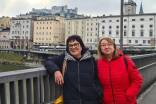 Caterina Müller (links) und Julia Wenderoth vor ihrem Self Love Club in der Rechten Salzburger Altstadt.