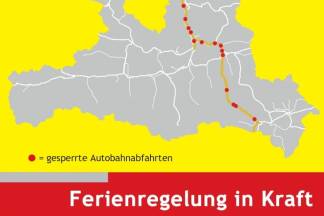 Ursprünglich war angekündigt worden, die Maßnahme gegen den Ausweichverkehr bei großen Staus nur bei Bedarf und nur stundenweise anzuwenden. Aber: Durch den Ferienstart im bevölkerungsreichsten deutschen Bundesland Nordrhein-Westfalen sowie in Teilen der Niederlande und der Schweiz kommt es nach Angaben des ÖAMTC am bevorstehenden Wochenende zu erheblichen Verzögerungen im Straßenverkehr.