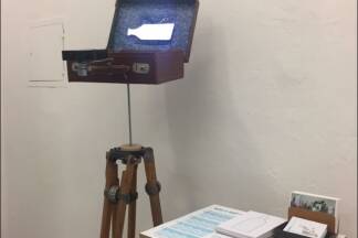 Im Projektraum periscope baute Dorit Ehlers im August einen Koffer auf. Eine kleine Flasche war darin zu sehen, ein Projektor warf Wellen auf die weiße Fläche. Die Aufgabe für die Besucher: Stell dir vor, du stehst an der Reling. Du siehst aufs Meer, hörst das Meer, riechst das Meer. Was kommt dir in den Sinn? Was fragst du die unbekannte Person neben dir? Diese Fragen kritzelten die Salzburger auf Kärtchen - die gemeinsam mit Ehlers nach Hamburg reisten.