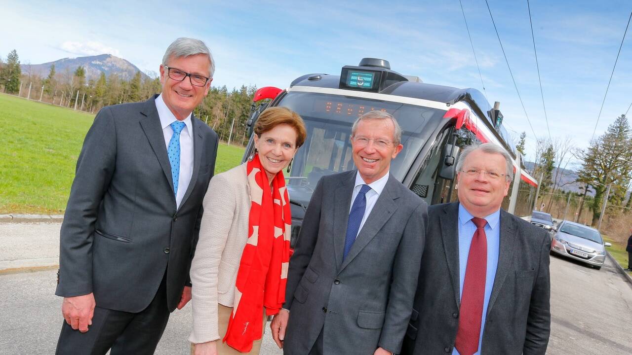 "Das ist ein Quantensprung", sagte Grödigs Bürgermeister Richard Hemetsberger anlässlich der Präsentation des Projekts "eBus" am Mittwoch. Die konkreten Pläne: Von der bisherigen Endstation Birkensiedlung in Salzburg-Gneis fährt die Linie 5 ab Herbst 2019 weiter über das Gewerbegebiet Grödig Nord und das Gemeindezentrum bis nach St. Leonhard zur Untersbergbahn. Die Tausenden Gäste der Seilbahn können damit ebenso wie die Arbeiter von Firmen wie Skidata, Tecan und Leube künftig, ohne umzusteigen, mit dem Obus fahren. "Nur wenn man schnell ans Ziel kommt, wird der öffentliche Verkehr auch angenommen", sagte Hemetsberger.