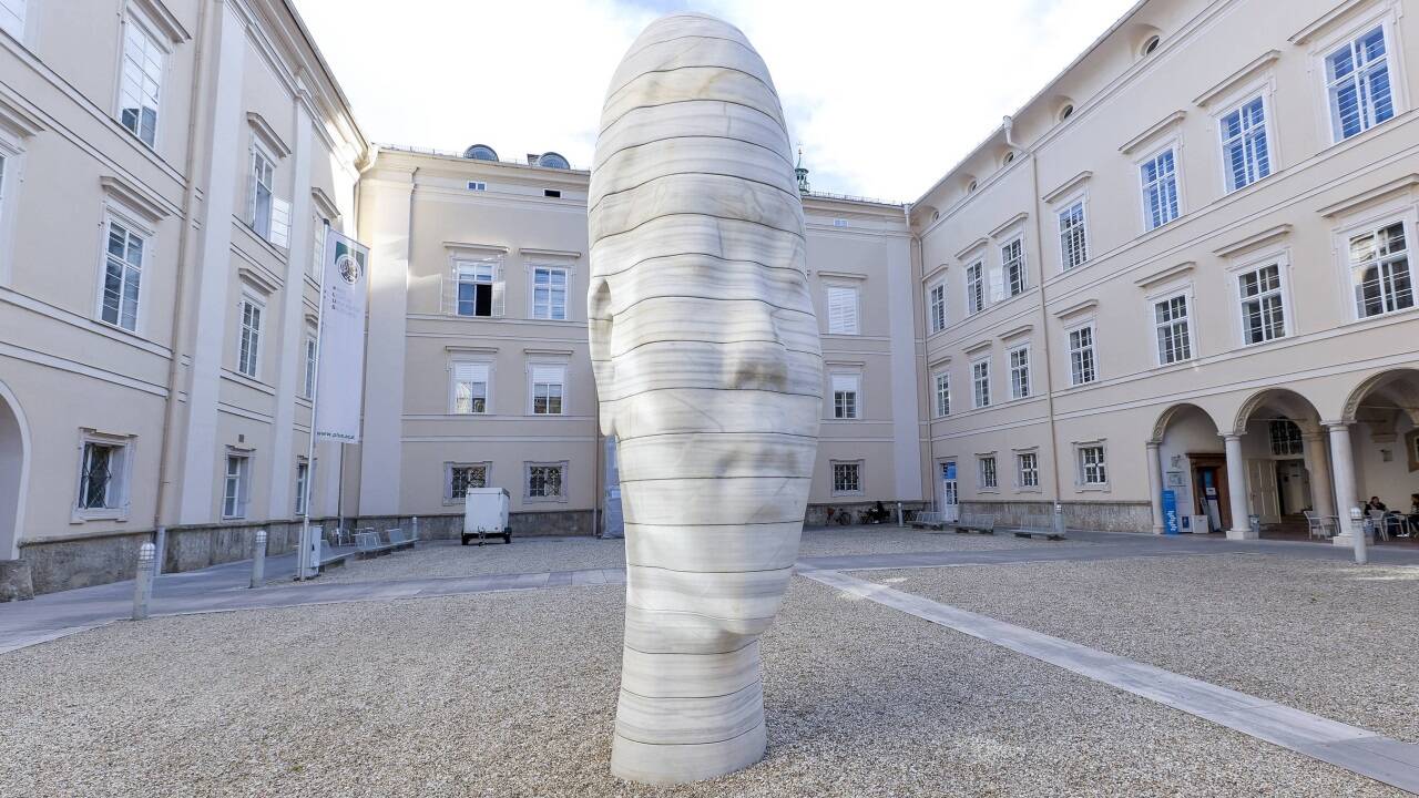 "Secret Garden". Fünf Frauenköpfe von Jaume Plensa werden als temporäres Kunstprojekt auf dem Residenzplatz aufgestellt.