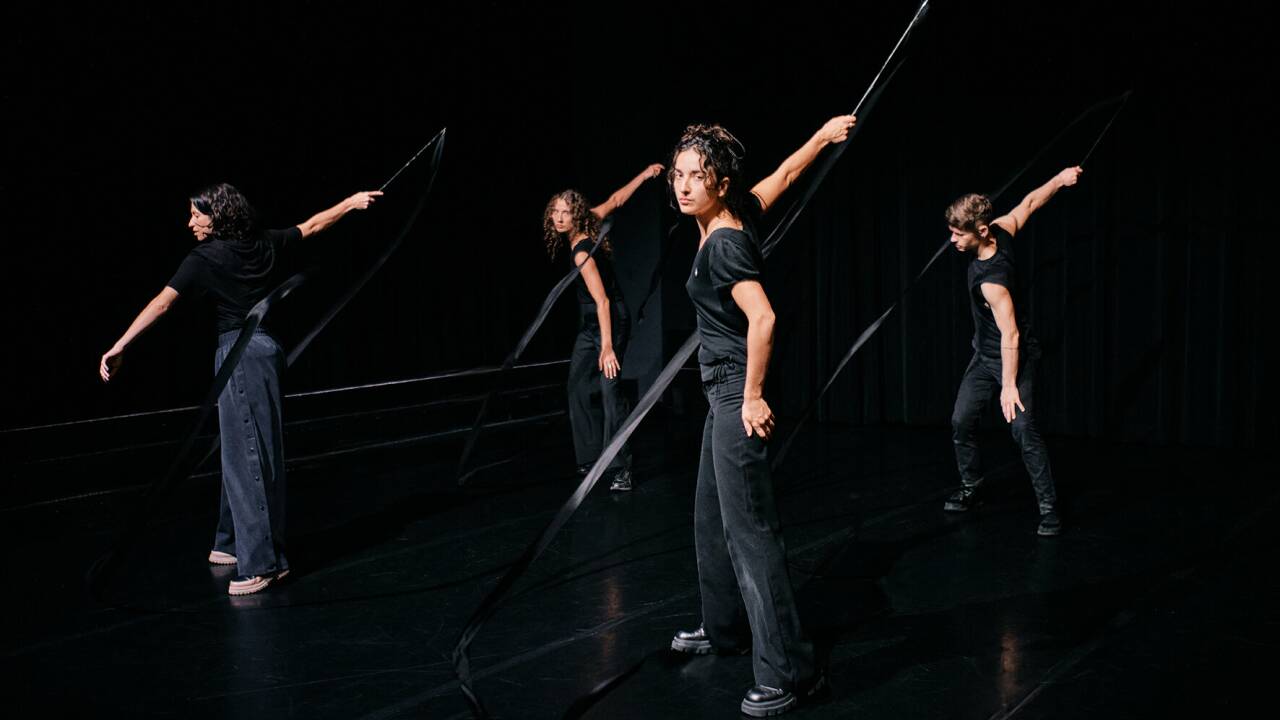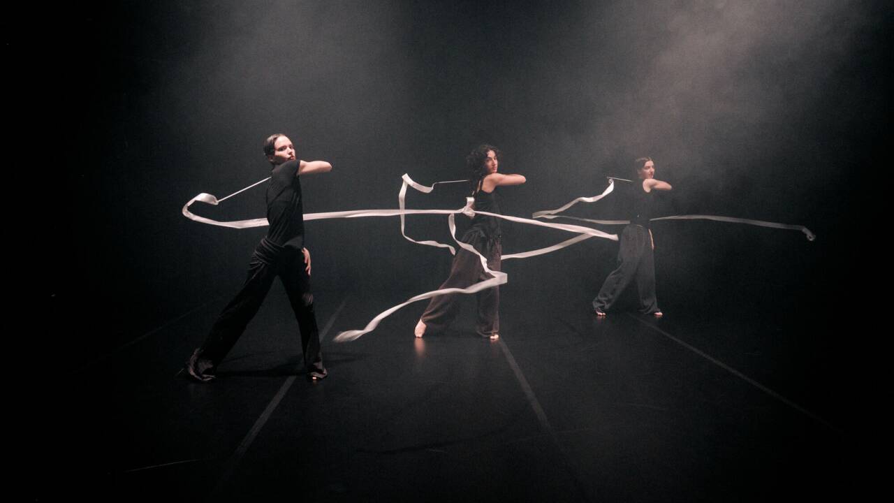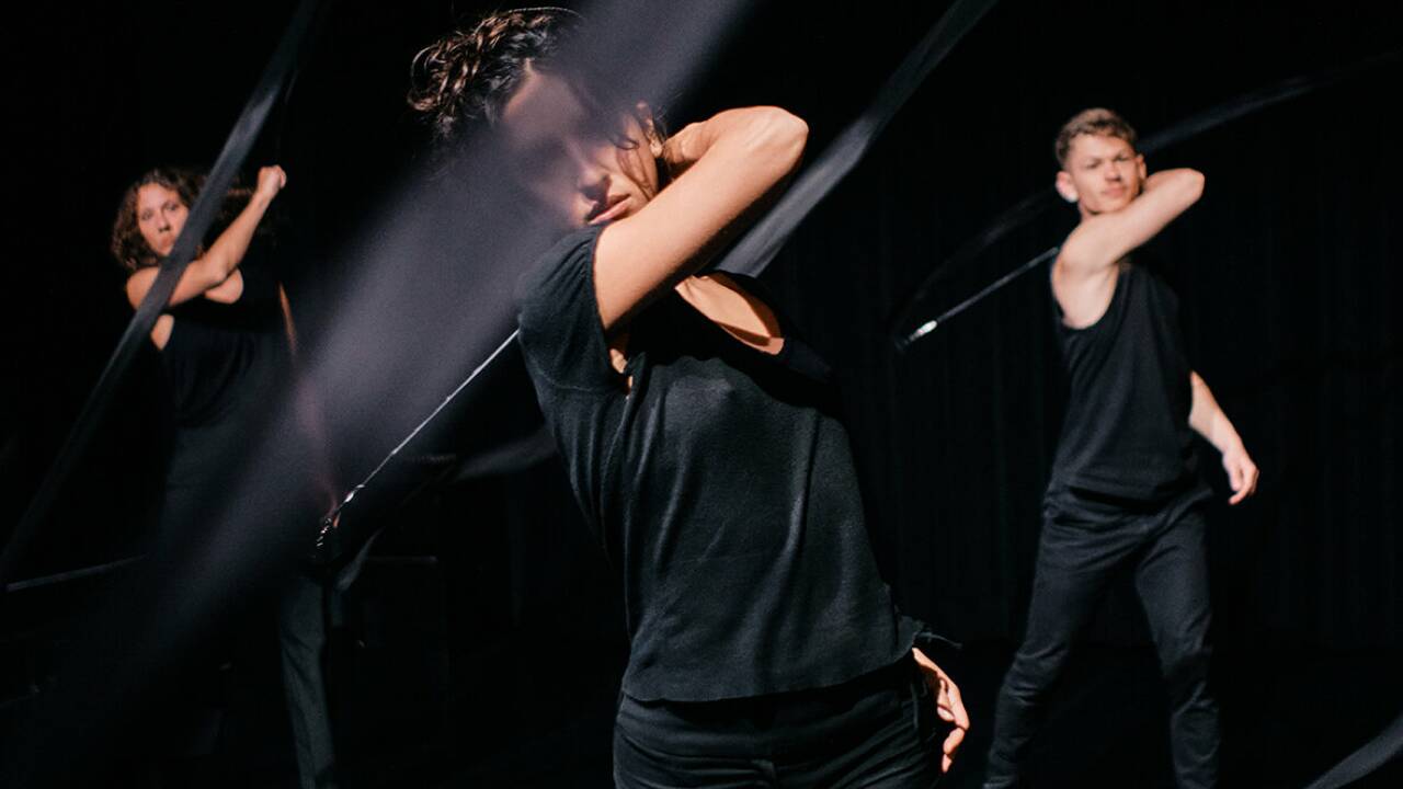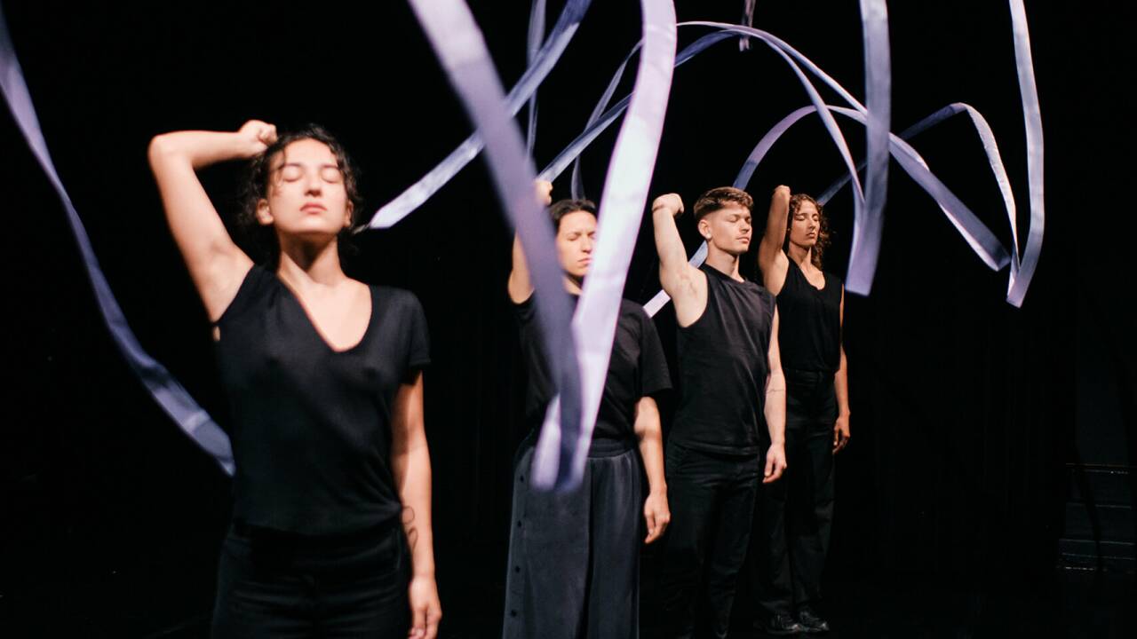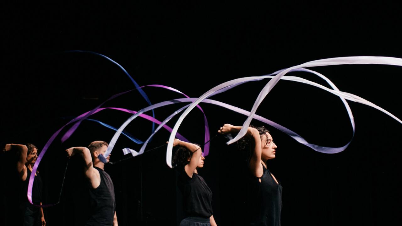 In der neuen Toihaus-Performance „Rauschen“ werden Bänder, wie sie in der Rhythmischen Sportgymnastik verwendet werden, in Bewegung gesetzt.