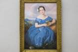 Fabelhaft ist auch der selbstbewusste, fast herablassende Blick, den Johann Baptist Reiter - er hat übrigens Wikipedia zufolge mit den 1848er-Revolutionären sympathisiert - seiner zweiten Ehefrau Anna Josefa mitgibt. Als sich der Maler 1853 in sie verliebte, war sie eine jüngere Näherin aus Brünn. Im Porträt trägt sie eine aparte Seidenmasche um den Hals, dazu farblich passende Ohrringe, weiters eine prächtige Stola, raffinierte Jacke und Spitzenbluse und ist doch eine schlichte Bürgersfrau.