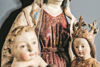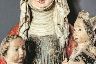 Draußen Anna bedeutet in Leogang auch: drinnen Anna. Dafür ist das Bergbau- und Gotikmuseum seit 2019 mit einer grandiosen Dauerleihgabe bestückt, die einen eigenen Annenraum füllt: neun Skulpturen, die meisten im Typus der Anna Selbdritt, also als Mutter von Maria und Großmutter von Jesus. Die jüngste Skulpturengruppe ist aus 1510 oder 1520 vom Meister von Rabenden, einem Grenzort des alten Salzburgs zum Chiemgau. Die älteste ist salzburgisch von 1430. Hermann Mayrhofer zufolge hat ein bayerischer Sammler, seit Langem Freund des Leoganger Museums, diese Stücke auf unbestimmte Zeit überlassen.