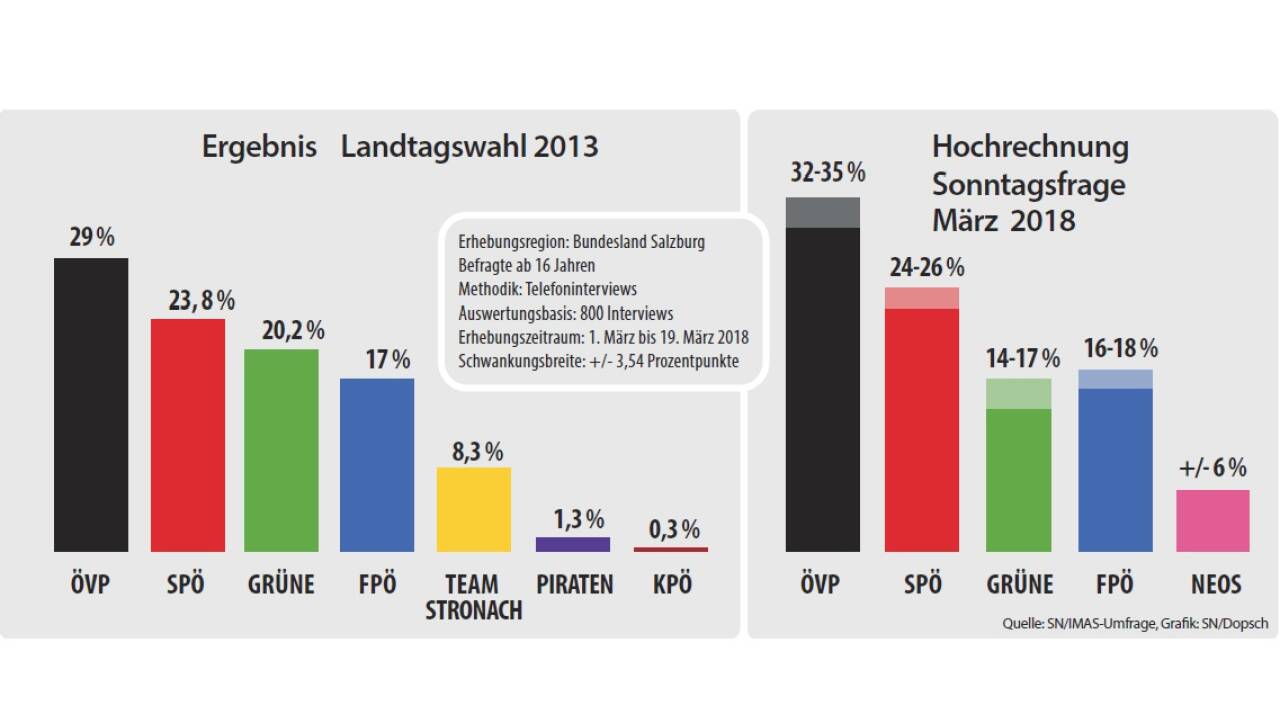 Für die Umfrage der ÖVP hat das Marktforschungsinstitut IMAS zwischen 1. und 19. März 800 Salzburgerinnen und Salzburger ab 16 Jahren befragt. Die maximale Schwankungsbreite beträgt 3,5 Prozent.