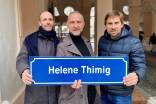 Mitarbeiter aus dem Magistrat tauschten am Dienstag die Schilder aus: Aus der Heinrich-Damisch-Straße wurde die Helene-Thimig-Straße.