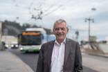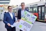 In der Stadt Salzburg wird an der Bushaltestelle vor dem Schloss Mirabell im Vorfeld der S-Link-Befragung informiert.