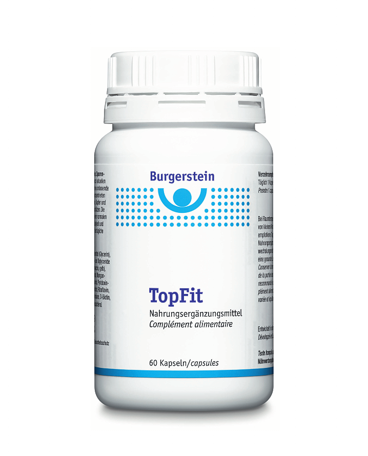 Burgerstein Mikronährstoffe sorgen dafür, dass dies gelingt. Für mehr Vitalität und Leistungsfähigkeit gibt es Vitamine, Mineralstoffe und Spurenelemente in idealer Dosierung - eine bewährte Kombination aus Natur, Qualität und Wissenschaft. Ein starker Wegbegleiter Überlastung und Stress ist ,,TopFit" - ein Top-Multi -, unterstützt mit allen acht B-Vitaminen und Ginseng die körperliche & geistige Leistungsfähigkeit. In nur einer Kapsel pro Tag.