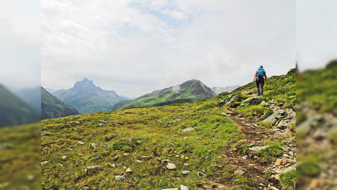 Wo im Winter Ski gefahren wird, sind im Sommer neuerdings Wanderer unterwegs: Der neue Weitwanderweg Arlberg-Trail umrundet in drei Tagen das gesamte Arlbergmassiv, verbindet die fünf Wintersportorte St. Anton, Stuben, St. Christoph, Zürs und Lech und baut die vorhandene Infrastruktur wie Hotels und Bergbahnen geschickt ein. Eine der drei Teiletappen führt von St. Anton über St. Christoph und den Berggeistweg nach Stuben - also von Tirol nach Vorarlberg. ,,Offiziell" startet diese Etappe mit einer Bergbahnfahrt auf den Galzig und dem Abstieg nach St. Christoph. Empfehlenswerter aber ist, mit dem öffentlichen Bus nach St. Christoph zu fahren und von hier aus direkt südwärts ins Albona-Gebiet zu starten. So bleiben die Hotelkästen und Hochspannungsleitungen von St. Christoph aus dem Blick.
