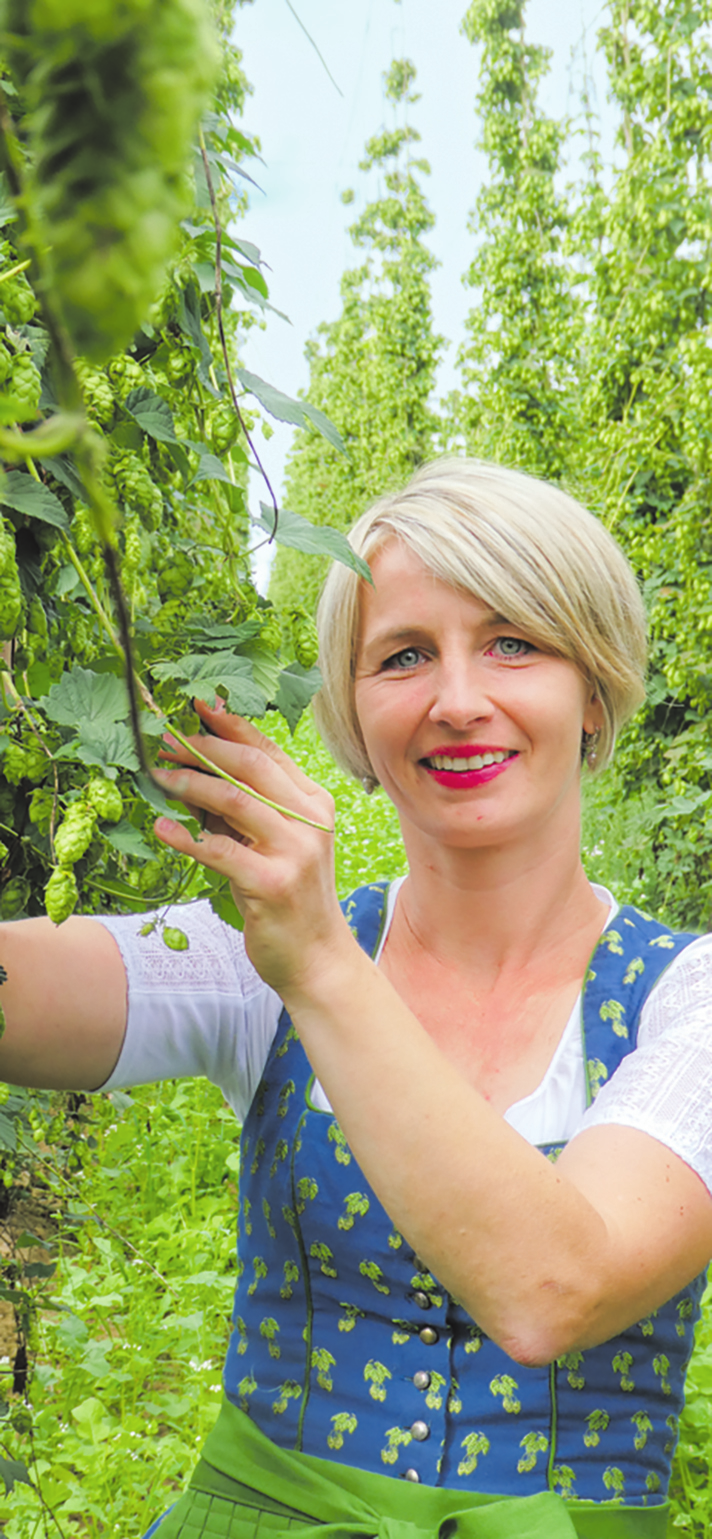 Persönlich erläutert bekommt man die Hopfenkultur bei den Botschafterinnen für diese alte Kultur- und Heil pflanze, wie Daniela Blomoser in Nandlstadt. Die Bäuerin ist mit dieser Kultur innig verbunden und trägt sogar ein Dirndl aus einem Stoff mit Hopfendolden darauf. Wenn sie erzählt, wie der Hagel ihre eigenen Hopfengärten im heurigen Juni schlichtweg zerstörte, kann sie ihre Tränen nicht mehr zurückhalten. Ein Sprichwort aus der Hallertau - im Dialekt heißt es Holledau, was so ähnlich klingt, als hätte Frau Holle auch im Sommer zu tun - lautet: „Wen der Hopfa amoi kratzt hod, den lasst er nimmer los."