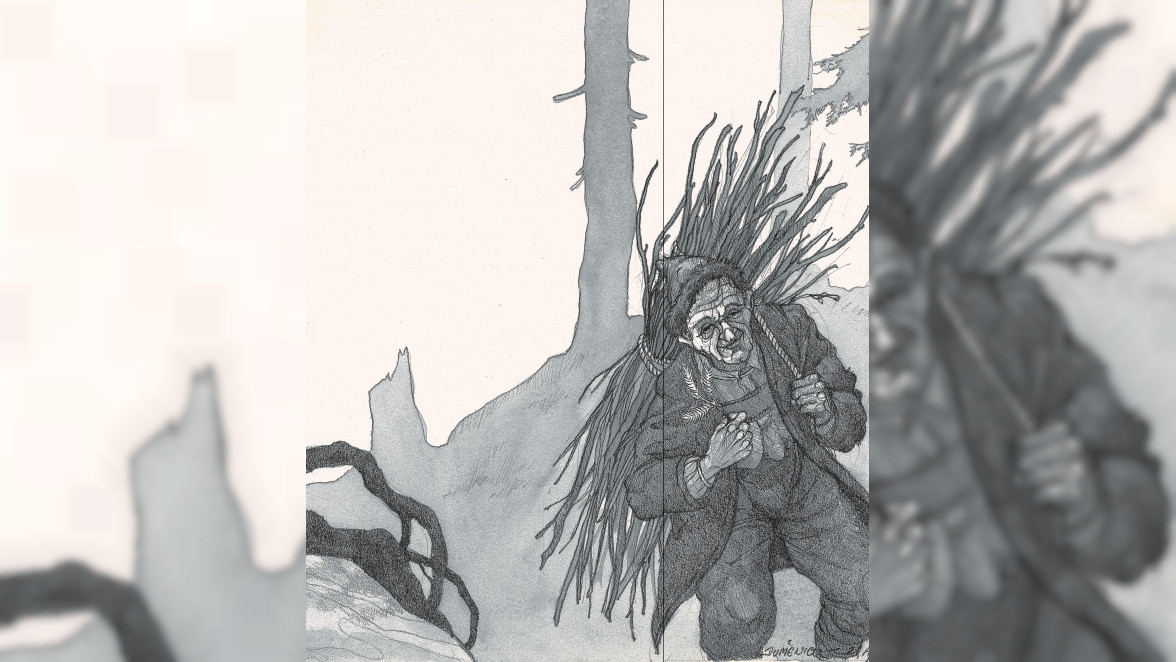 Es ist ihm recht mühsam angekommen. Er war schon alt und hat sein Leben lang immer gearbeitet, aber reich ist er davon nicht geworden. Endlich hat er ein Bündel Klaubholz beisammengehabt und hat sich auf einen Stumpf gesetzt, um sich auszuruhen.