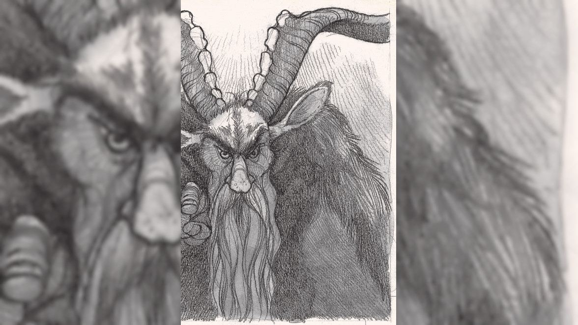 Gleich darauf stand der Teufel in seiner wahren Gestalt vor ihnen, mit Teufelshörnern und Teufelshufen und einem Teufelsschweif. Er tat sich die Flügel um und brauste davon.