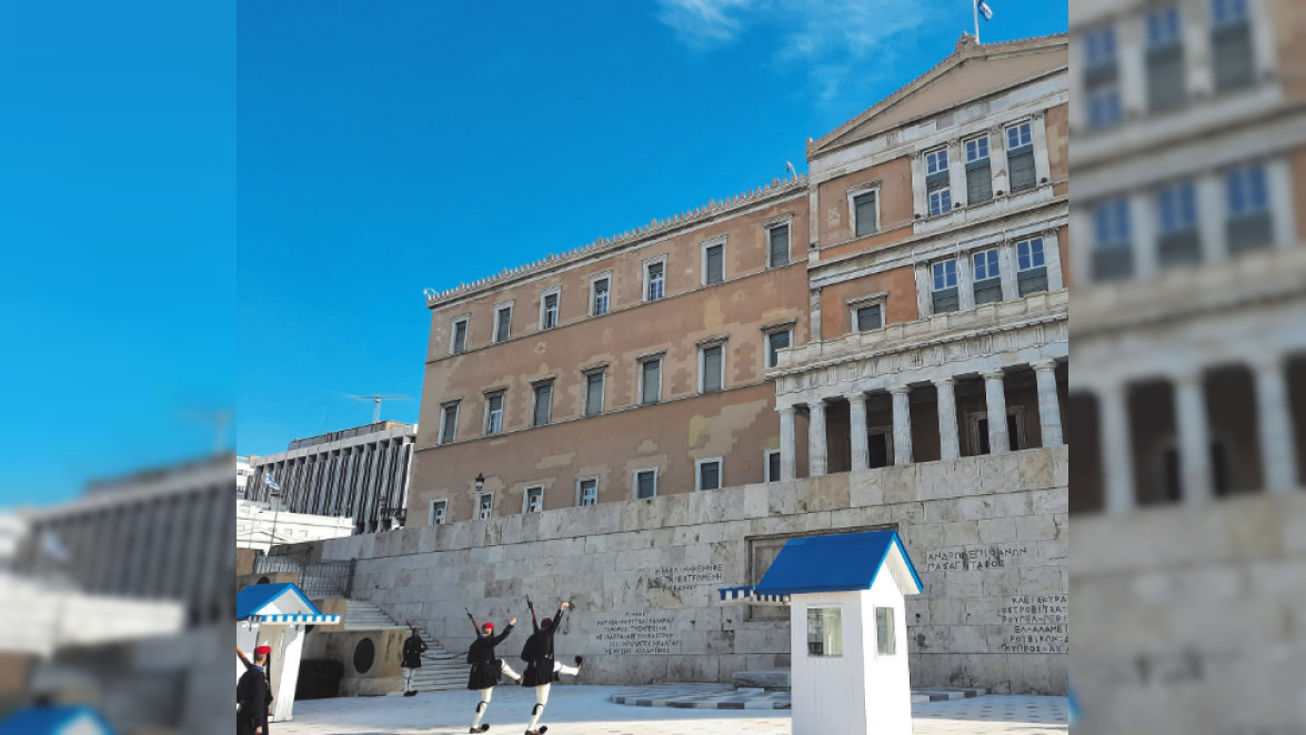 Das griechische Parlament in Athen, einst Schloss von Otto und Amalia. Die EvzonenSoldaten waren Ottos Leibgarde.