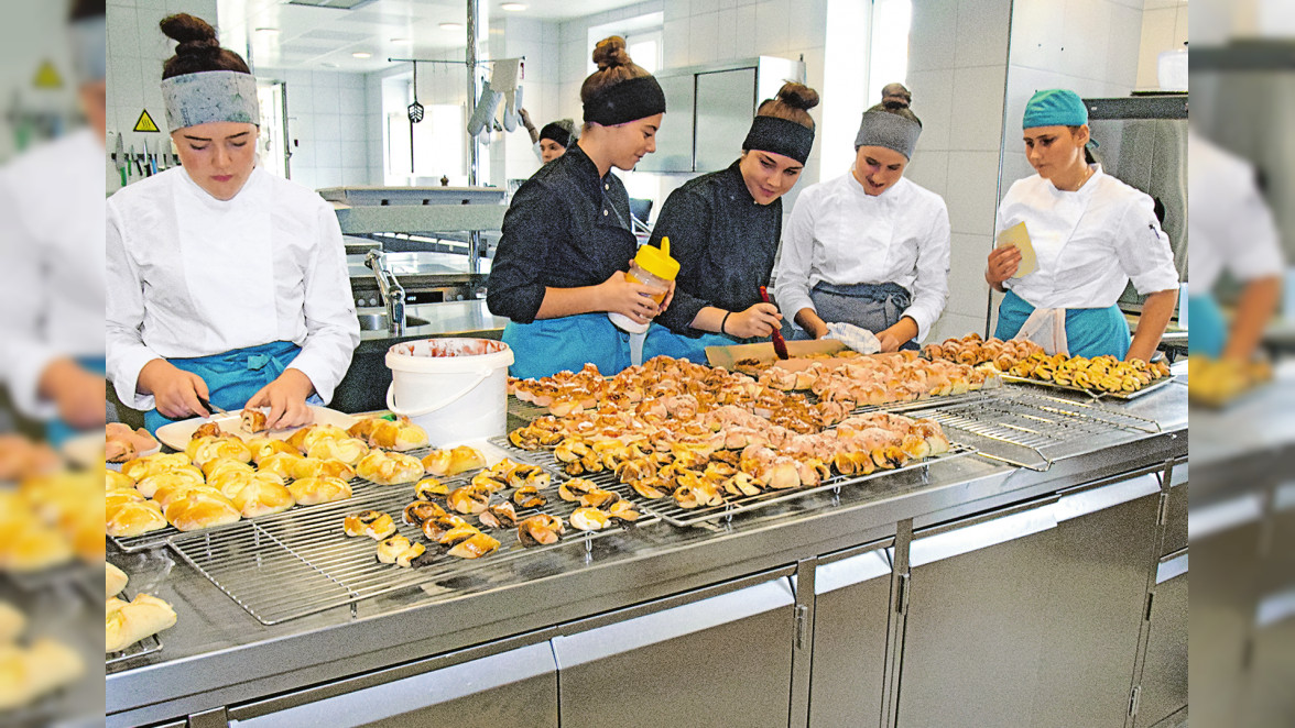 WALS-SIEZENHEIM. ,,Puh, heiß ist es hier!", stöhnt eine Schülerin der ersten Klasse, die mit ihren Kolleginnen in der Betriebsküche arbeitet. Topfentascherl, Nusskipferl und Reindling-Muffins en masse haben sie gerade produziert, als Vorbereitung für den bevorstehenden Absolvententag. „Das ist wichtig für die Schülerinnen, um zu sehen: Halte ich das später im Berufsleben aus, wenn es unangenehm wird?", erklärt Walburga Kaiser, seit gut einem Jahr Direktorin der Landwirtschaftlichen Fachschule Salzburg in Kleßheim. Der intensive Bezug zur Praxis macht's nämlich aus. „Mindestens ein Drittel der Schulzeit ist dem praktischen Arbeiten gewidmet. Das ist vor allem für das Arbeiten mit Grund und Boden wichtig."