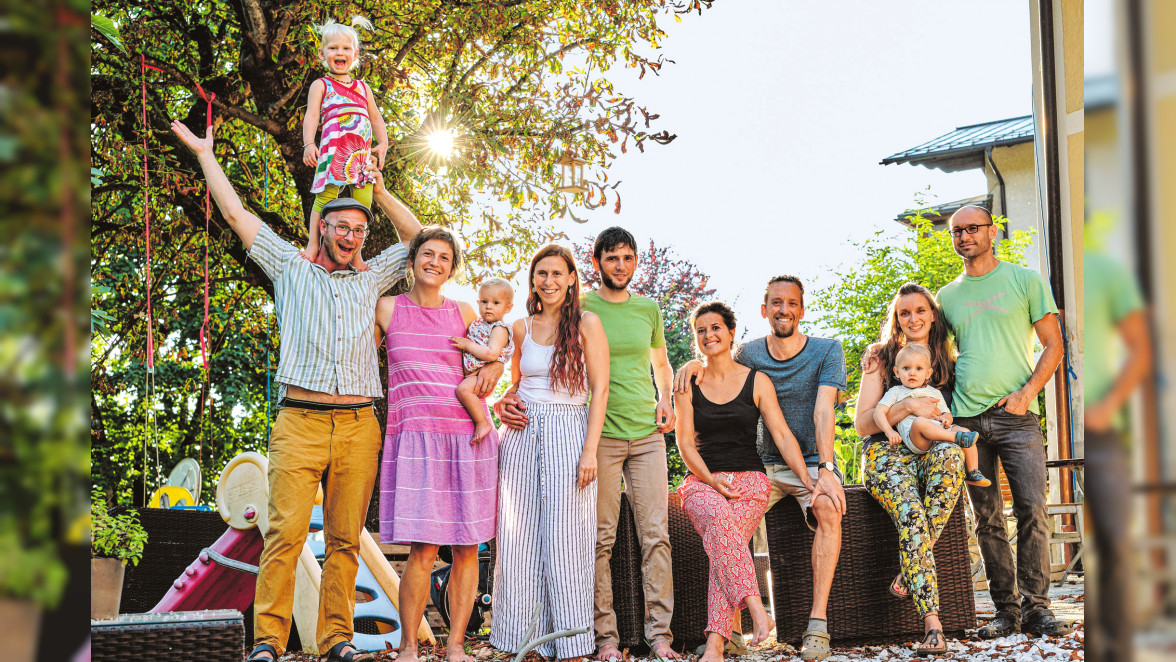 Es ist Dezember im Jahr 2018, als sich drei junge Salzburger Paare einig werden: Sie möchten gemeinsam ein Haus kaufen. Vier von ihnen wohnen bereits zusammen in einer WG, stehen in einer engen Freundschaft zu den weiteren beiden. Sie alle eint der Glaube an das Gemeinschaftliche, Soziale. Statt klassisch mit der Familiengründung auseinanderzugehen, wollen sie das Fundament dafür schaffen, auch mit Familien noch beieinander zu sein. ,,Wir haben damals gemeinsam ein großes Plakat gestaltet, auf dem wir formuliert haben, was wir uns für ein gemeinschaftliches Haus wünschen würden“, erzählt Mirjam Leitner. Die 31-jährige Musikpädagogin ist eine der sechs.