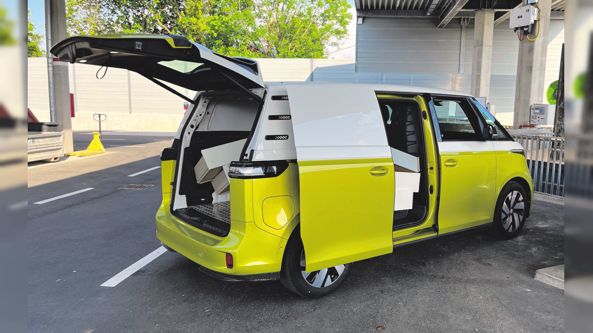 Die Antwort darauf lautet: Absolut! Denn obwohl der ID. Buzz in Sachen Nutzlast, Ladevolumen oder Anhängerlast noch nicht ganz mit seinen dieselbetriebenen Verwandten mithalten kann, spricht viel dafür, eher früher als später auf die Akkualternative umzusteigen. Da wären zunächst die harmonischen Fahreigenschaften. Vor allem im städtischen Stop-and-go-Verkehr, der für viele Gewerbetreibende, Zustelldienste und Handwerker einen Großteil des Berufsalltags ausmacht, kann der ID. Buzz seine Stärken voll ausspielen. Im Vergleich zum spielerischen, lautlosen Plugand-play-Gefühl des E-Antriebs wirkt das ständige Ein und Aus des Verbrenners wie aus einem längst vergangenen Jahrhundert. Dazu kommt, dass der Elektromotor im Stadtverkehr dank kräftiger Rekuperation unerreicht effizient unterwegs ist. Doch nicht nur das: Eine Fahrt über 371 Kilometer von Salzburg ins Burgenland schaffte der ID. Buzz mit Tempomat auf 110 km/h mit einem Durchschnittsverbrauch von sensationellen 17,1 kWh.