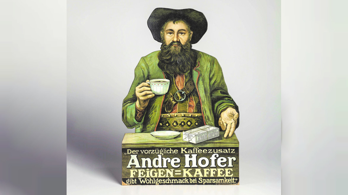 Ausstellung „Café Salzburg" im Salzburg Museum. Im Bild: Leutert & Schneidewind (gegr. 1895), Werbeständer Andre Hofer Feigenkaffee, um 1900, Karton, Papier, bedruckt. BILD: SN/SALZBURG MUSEUM