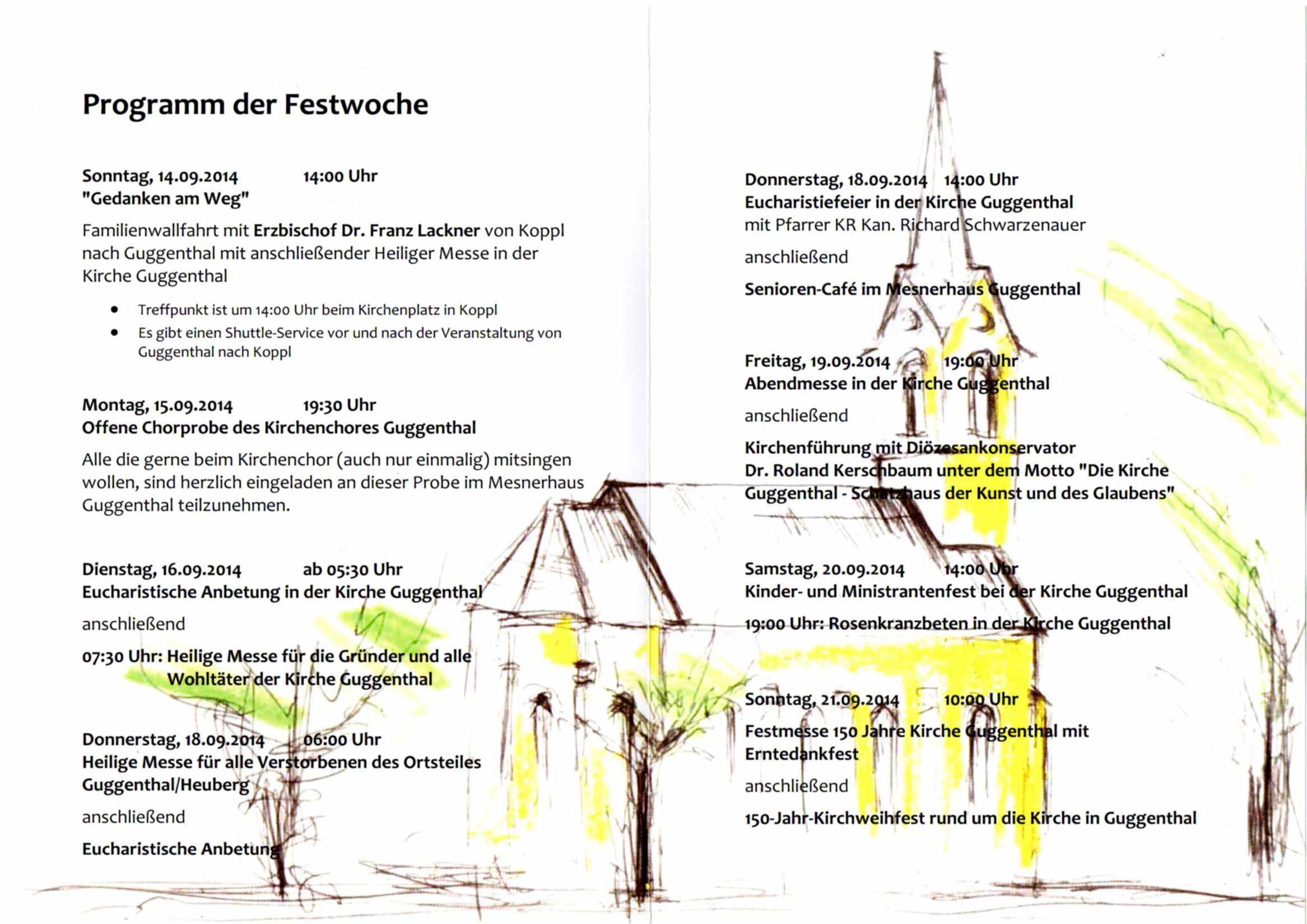 - 150 Jahre Kirche zum hl. Kreuz und zur hl. Elisabeth in Guggenthal, Programm der Festwoche