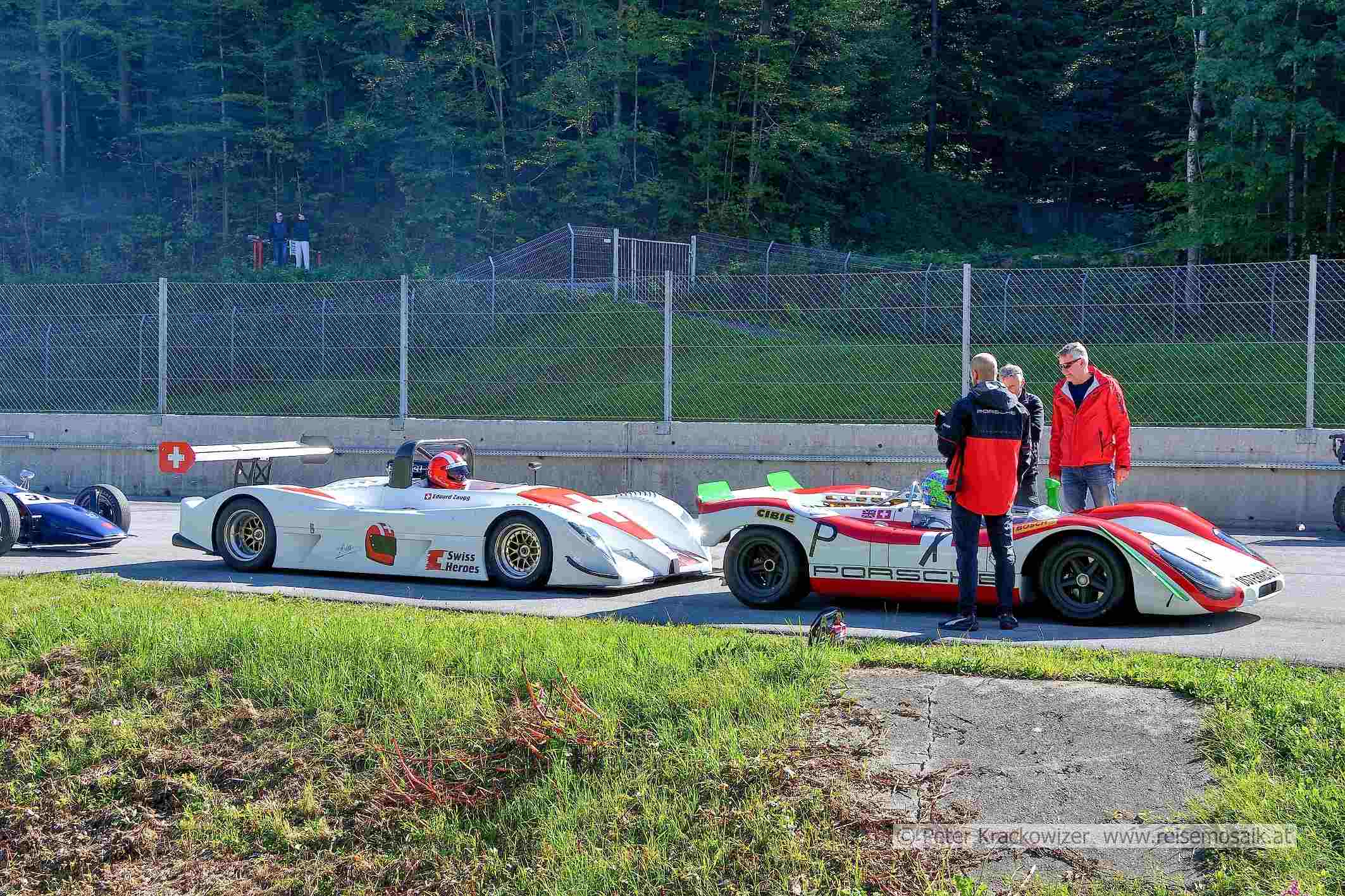 - Legends Grand Prix 2025 Salzburgring Boxen. Warten auf den Start. Links Nr. 25: Eduard Zaugg aus der Schweiz, der einen Pedrazza PRC S4 Baujahr 2005 mit 420 PS fährt, rechts Nr. 33 Porsche 908/02 Spyder, Baujahr 1969, 350 PS, Fahrer GT Masters-Rennfahrer Marco Seefried. Mit diesem Porsche waren Rolf Stommelen, Joe Buzzetta, Kurt Ahrens und Vic Elford mehrfach 1969 und 1970 erfolgreich.