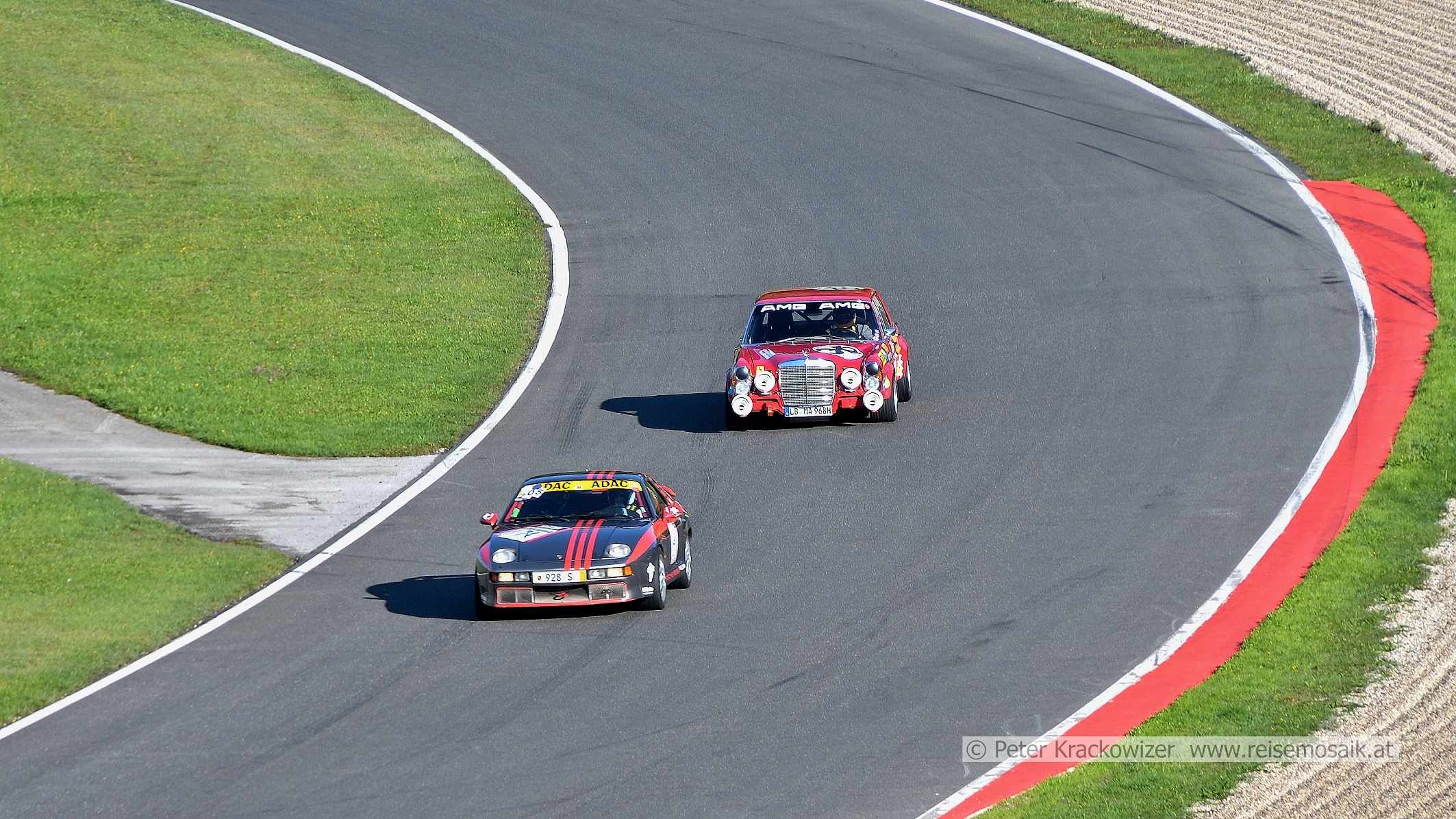 - Legends Grand Prix 2025 Salzburgring Fahraufnahmen. Hinten: Mercedes-Benz 300 SEL 6,8 l "Rote Sau", Baujahr 1971, 428 PS, 6800 cm³, Fahrer: Karl Wendlinger