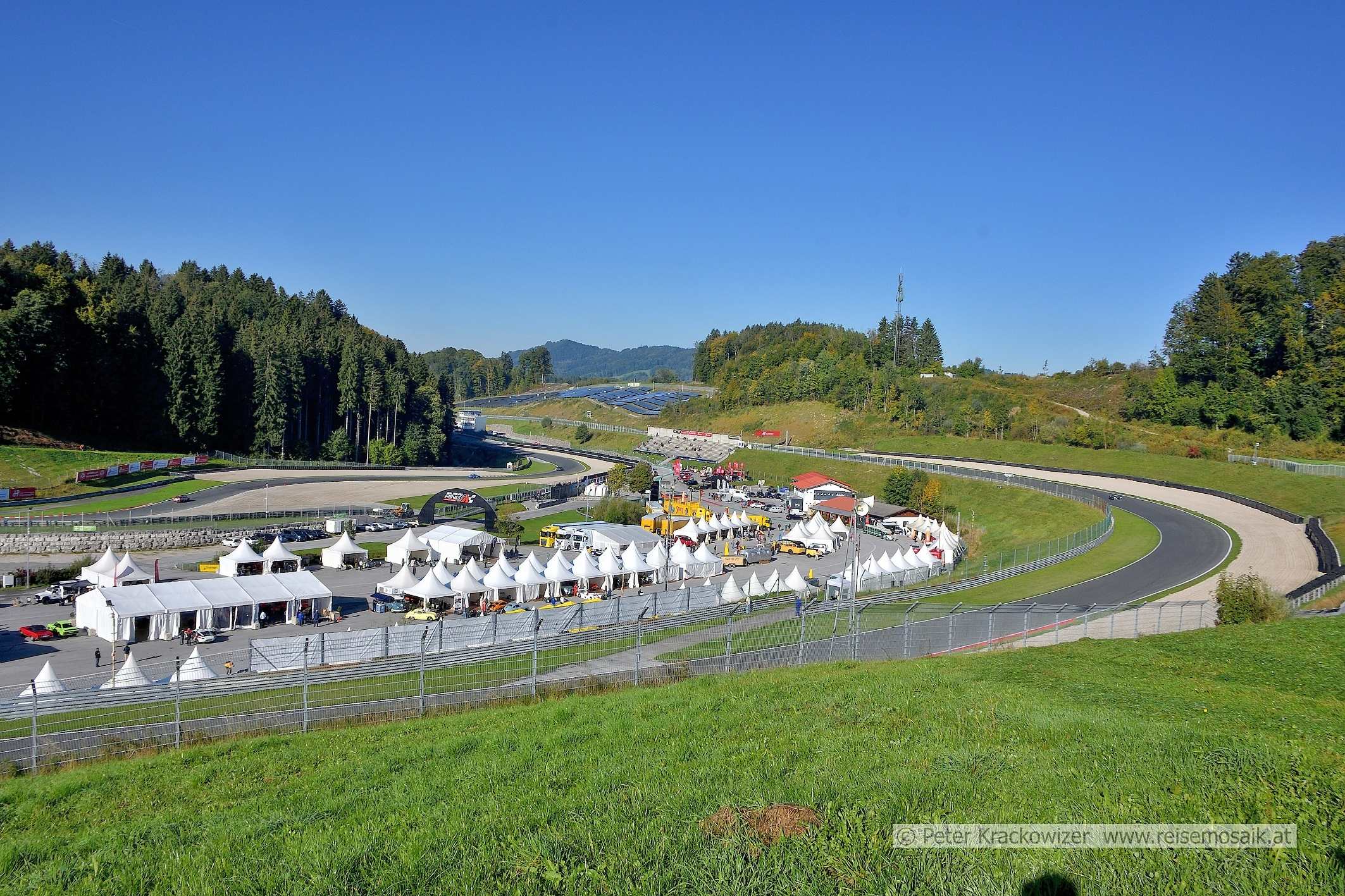 - Legends Grand Prix 2025 Salzburgring Fahrerlager. Beginn der langgezogenen Fahrerlagerkurve. Links die Schikane vor Start und Ziel.