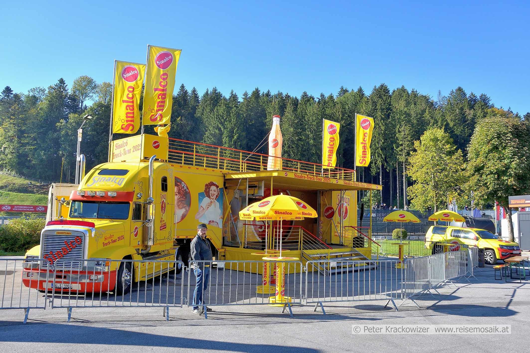 - Legends Grand Prix 2025 Salzburgring Fahrerlager. Sinalcotruck, in dem am Abend "Rusty" auftrat.