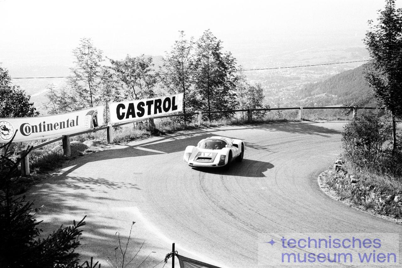 - Gaisbergrennen 1967 am 3. September, Nr. 17 - Rudi Lins auf Porsche Carrera 6", hier in der Rauchenbichl-Kehre.
