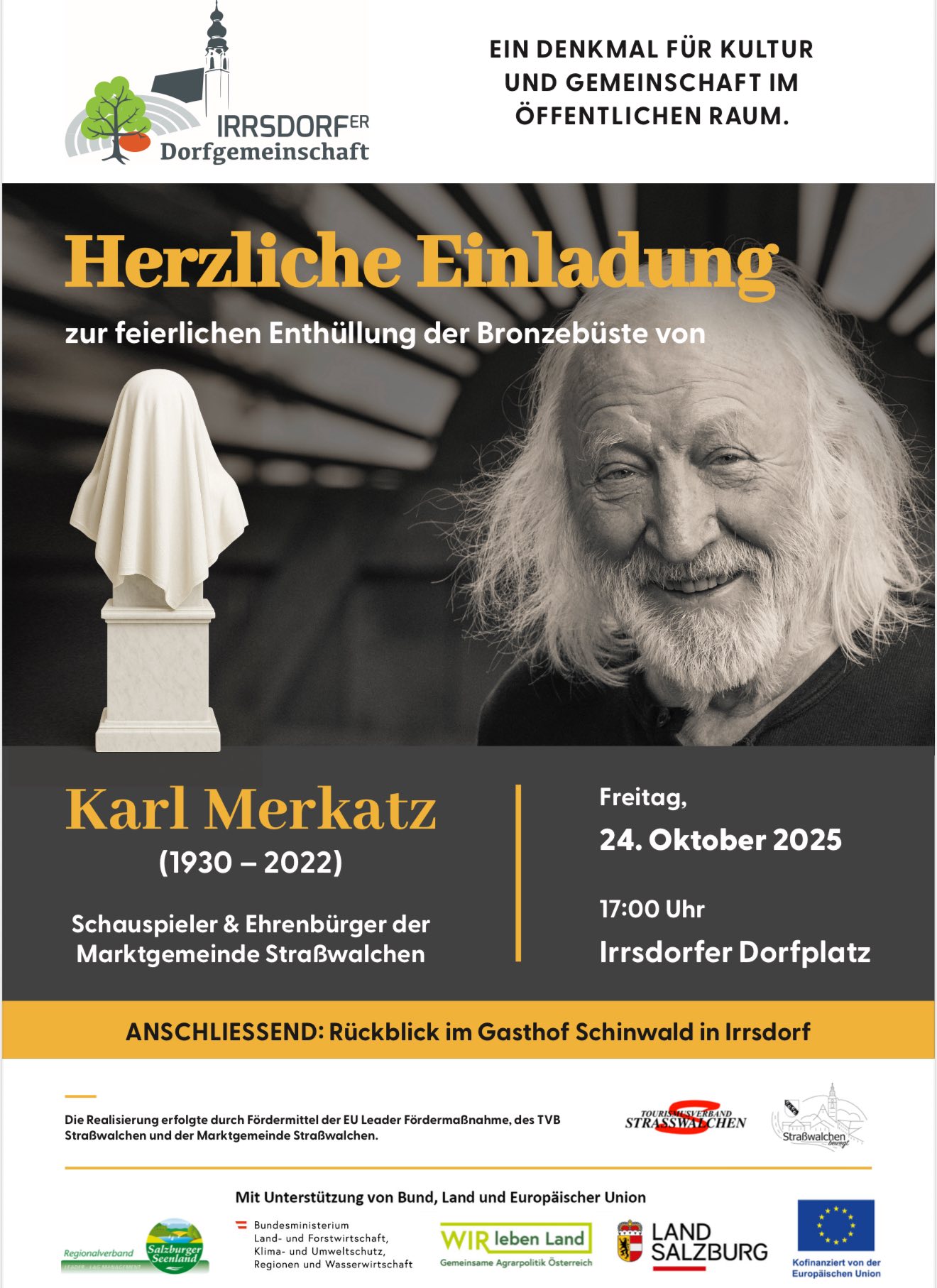 - Plakat Ankündigung Denkmalenthüllung Karl Merkatz in Irrsdorf.