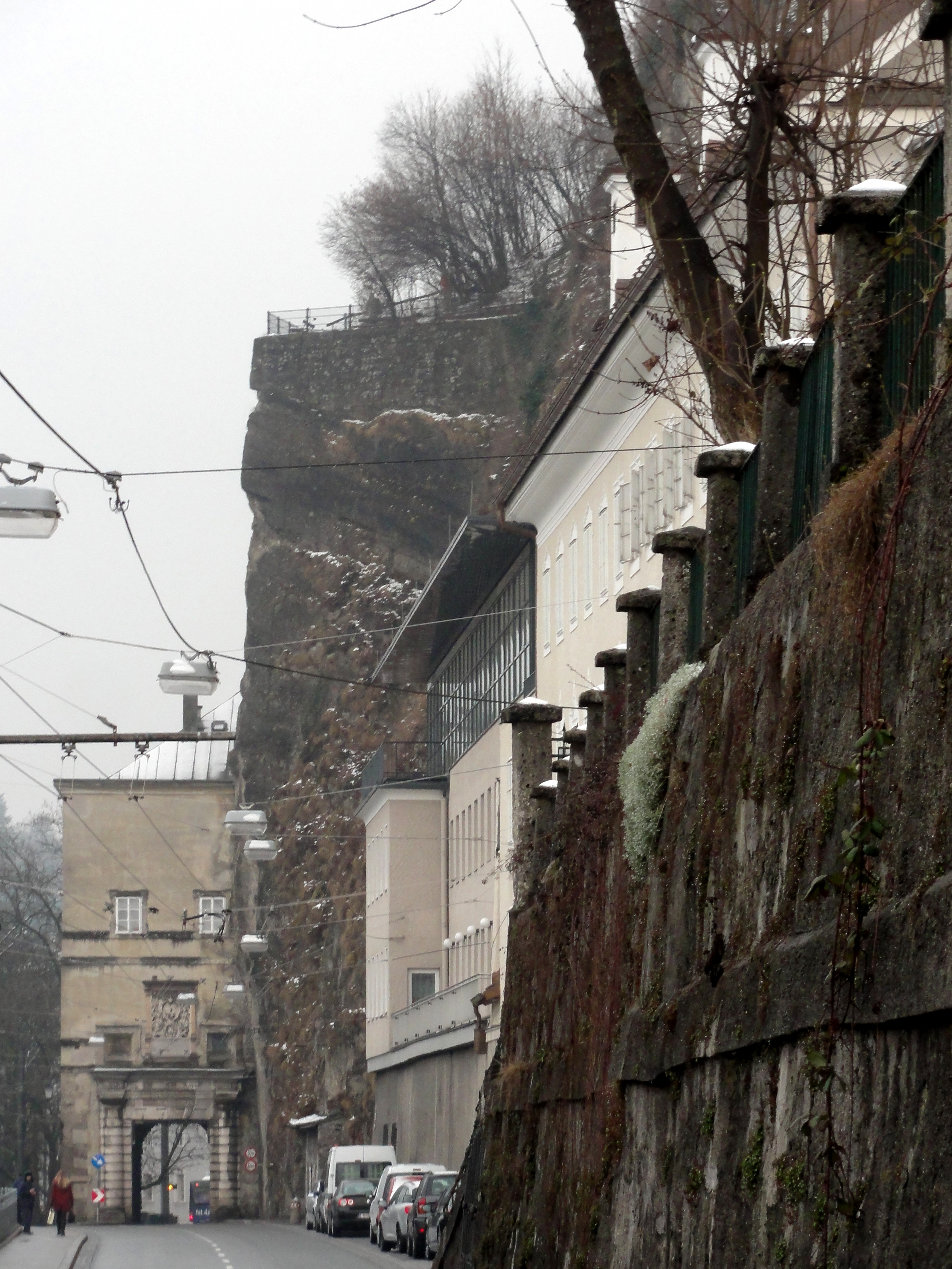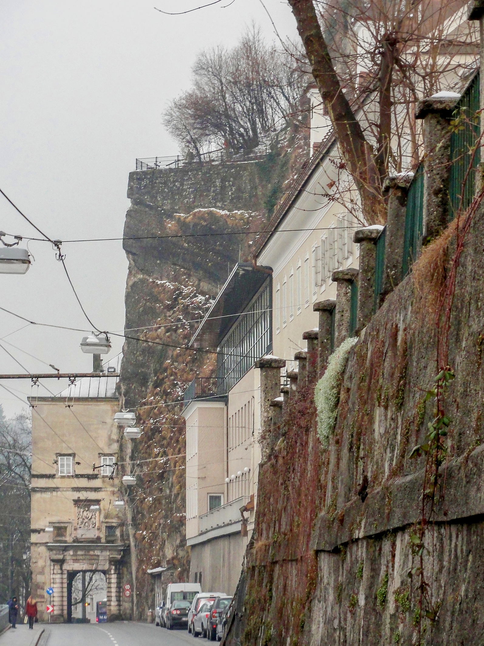 - Müllner Hauptstraße in Richtung Klausentor, darüber die Humboldtterrasse