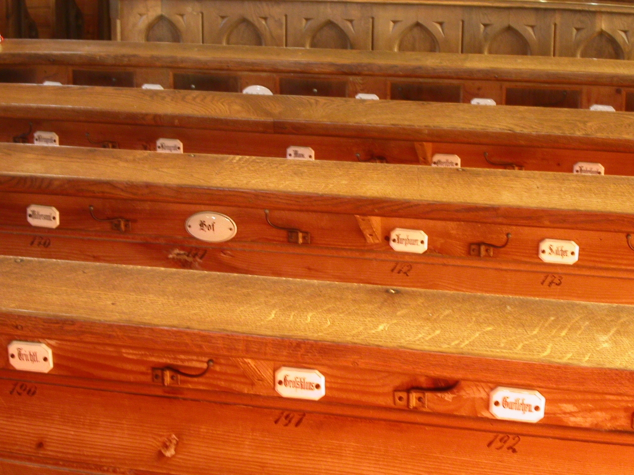Datei:Maria Neustift benannte Kirchenbänke 2003 A 076.jpg