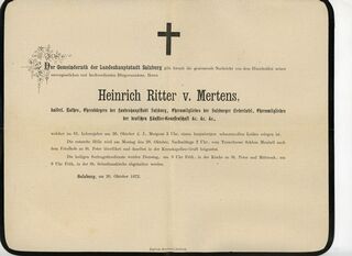 - Todesanzeige 1872 vom Salzburger Gemeinderat für Vincenz Heinrich Ritter von Mertens