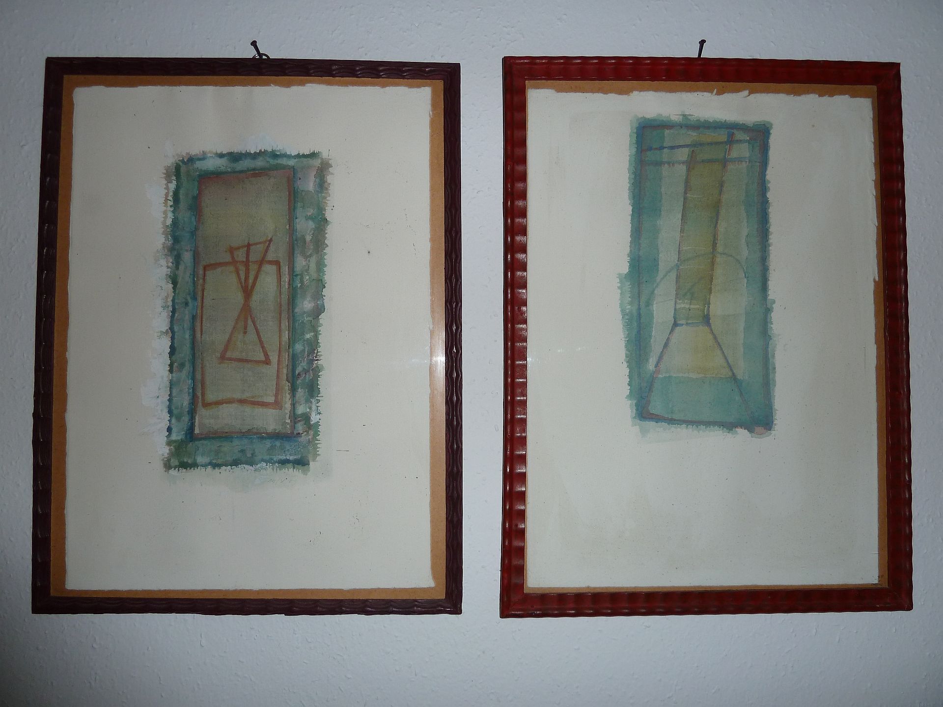 Die Aufnahme zeigt zwei Aquarelle von Richard Hirschbäck.