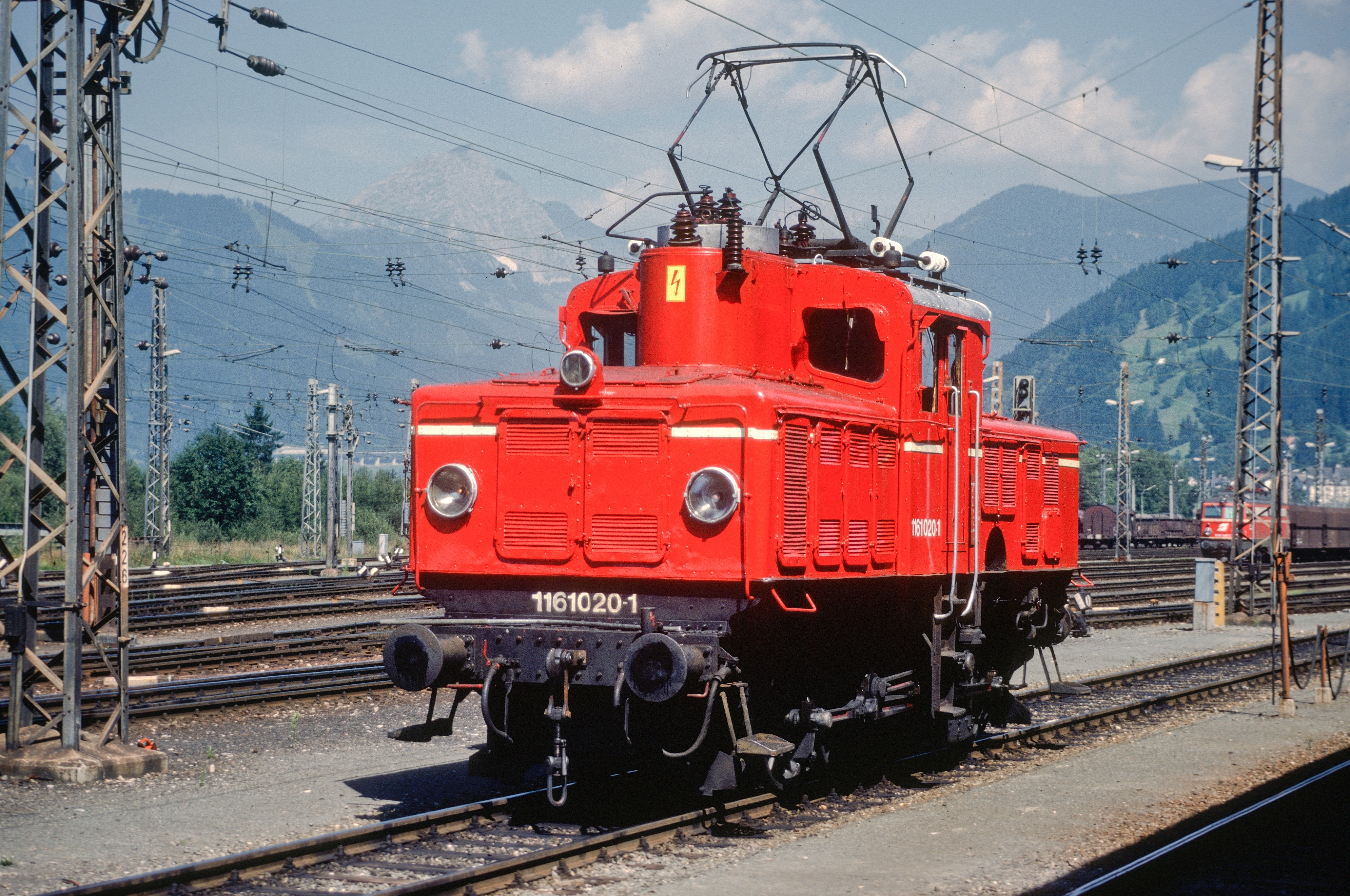 Datei:Saalfelden Bahnhof Lokomotive der ÖBB 1161 frisch rot revidiert 1987.jpg
