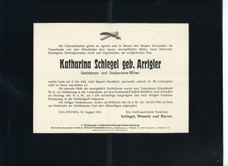 aktuell | 22:23, 14. Okt. 2025 | ![]() | 3.509 × 2.550 (2,98 MB) | Peter Krackowizer (Diskussion | Beiträge) | {{Bildbeschreibung2 |Beschreibung = Todesanzeige 1911 für Katharina Schlegel |Quelle = Sammlung Kobler-Spängler-Briefe von Otto Holzapfel |Fotograf = |Erstelldatum = 1911 |Lizenzkommentar = }} == Bildlizenz == {{Bild/Public Domain}} Schlegel |