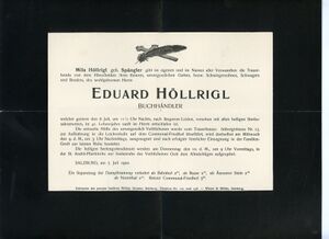 Eduard Höllrigl war der Sohn des Südtiroler Arztes Franz Höllrigl aus Schenna bei Meran und seiner Frau Barbara, geborene Kößler. Bereits 1883 wird er als Buchhändler im Zusammenhang mit dem Salzburger Turnverein erwähnt.[2]