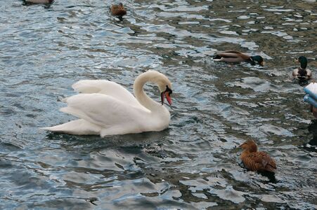 Auseinandersetzung mit einem Höcker-Schwan – beherzter Streit um`s Futter