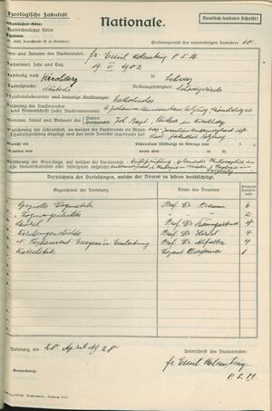 Nationale von Emil Holenstein (20.04.1928), Universitätsarchiv Salzburg FA 118 (ePLUS – Digitale Bestände der Universität Salzburg).