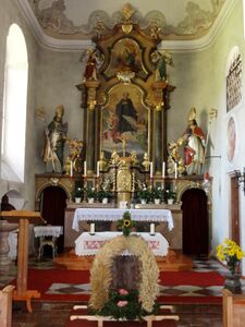 Die Erntekrone 2011 vor dem Altar der Pfarrkirche zum hl. Leonhard in Forstau.